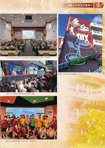 基隆女中百年校慶專刊 112 學年度基隆區協作共好計畫學生自主學習成果聯合發表會 ( 海科館 ) 彰顯五育俱全特質的校園壁畫 民國 112 年臺灣燈塔教育節學生社團活力表演 臺師大賴以威教授講座—演算法與人工智慧簡介 13 13
