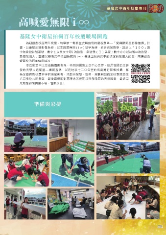 象徵無限大;整體以基隆女中校園為底的 i ∞,傳達出我與女中的情誼與無限大的愛,來傳遞吾