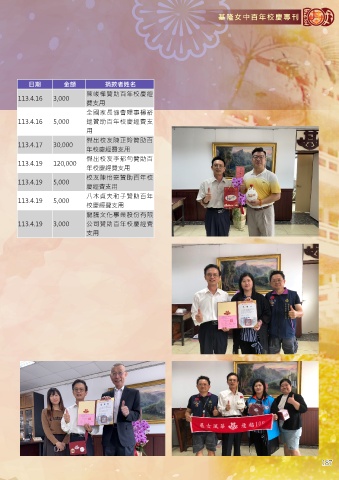 113.3.13 3,000 劉玲花 113.4.16 5,000 遑贊助百年校慶經費支