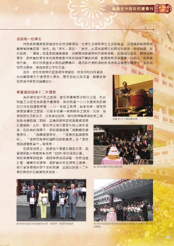 89 周年校慶曾校長頒發校友會、家長會、教師會感謝狀 90 周年校慶曾校長與穿著校服的教職員校友團合唱生日