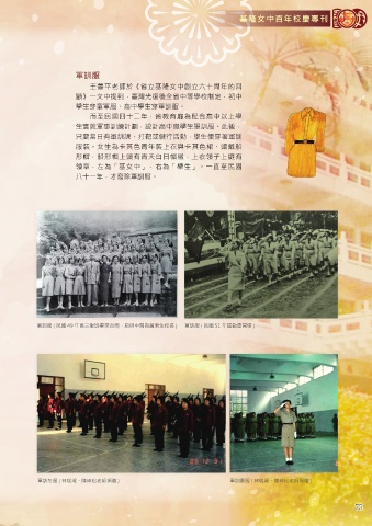 軍訓服 ( 民國 49 年高三愛班畢業合照,前排中間為黃東生校長 ) 軍訓服 ( 民國 51 年運動會開場 )