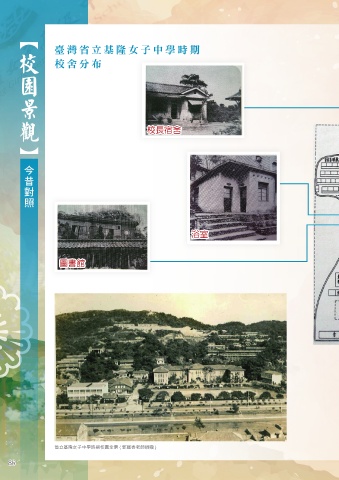 臺灣省立基隆女子中學時期 校舍分布 校長宿舍 校長宿舍 浴室 浴室 圖書館 圖書館 省立基隆女子中學時期校園全景 ( 郭麗香老師捐贈 ) 86 86